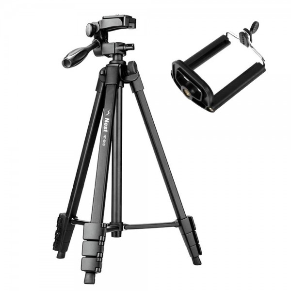 Possui pernas de alumínio de quatro seções com travas 'flip' de plástico proporcionando estabilidade para montar o equipamento.