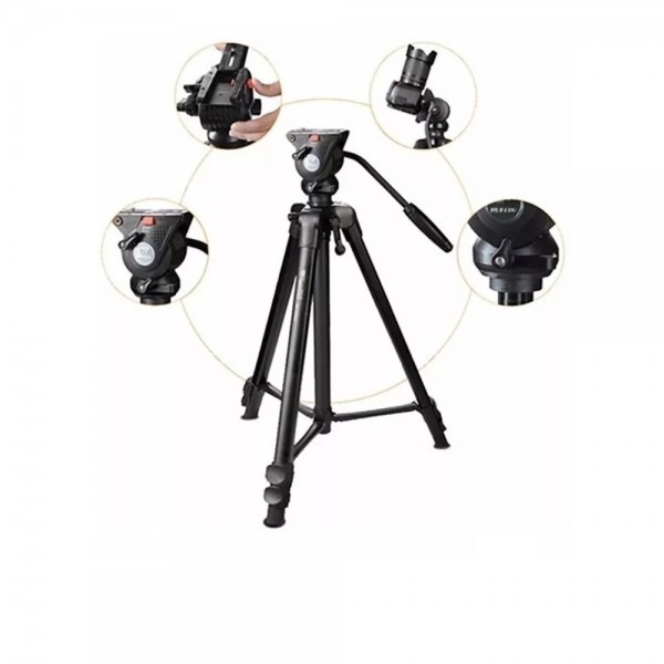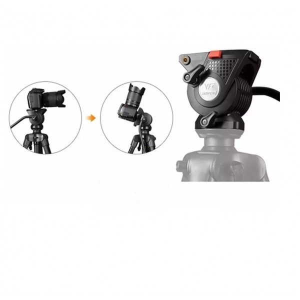 O tripé WF 3308A possui pernas de liga de alumínio com superfície oxidada dura, anti-risco e durável é equipado com controle de aperto para ajustar a posição da cabeça durante o tiro, o mesmo possui damping suporte da cabeça fluido para fotografia panorâmica 360 ° e tiro vertical.