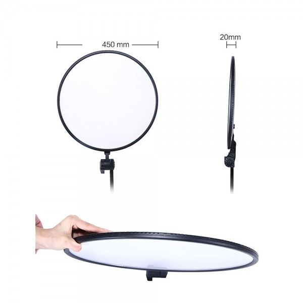 Diferente da maioria dos painéis de LED, a luz emitida pelo RPAD 18D causa muito menos incômodo aos olhos. Apesar de ter 45cm de diâmetro, o RPAD 18D é muito fino, medindo apenas 2 cm de espessura.