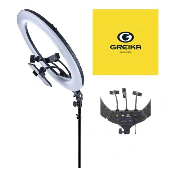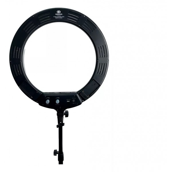 O Ring Led Greika CL-18 oferece iluminação de intensidade e desempenho profissional, com mudança de temperatura de cor instantânea de 3200k-5600k, e ao mesmo tempo um equipamento leve, durável e fácil utilização.