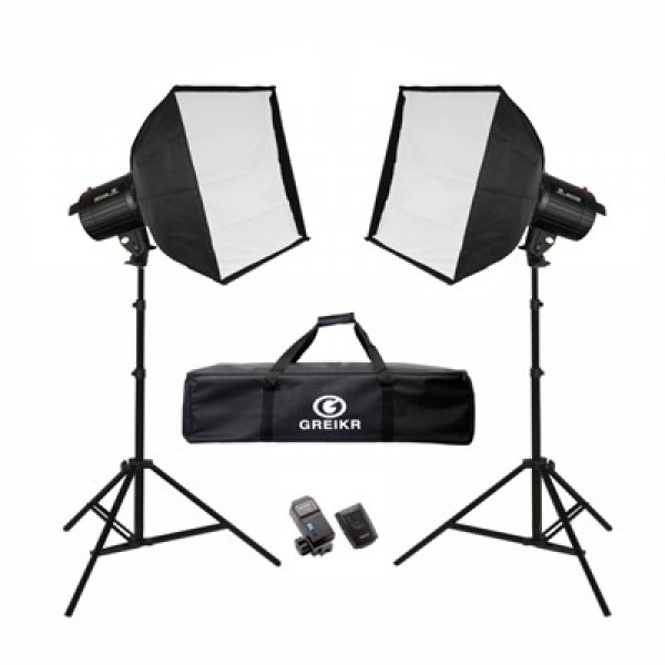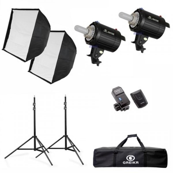 Kit de Flash 600 W 220V para estudio Série Mactop Greika se destaca pela sua durabilidade, com estrutura em aluminio alloy e carcaça em plástico rigido combinando qualidade, mobilidade e leveza.