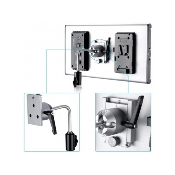 CONTEÚDO Da Embalagem Fonte de Luz 960 lâmpadas de Led Iluminação 9800 Lm Dimensões (aprox.) 41 x 20 x 5 mm Consumo de energia 60W Temperatura de cor Ajustável - de 3200K a 5600K Peso 1,56kg Cri 96± Voltagem Dc 14.8V / 100-240V - Dissipação ultra eficiente de calor - Design detalhado com o uso de liga de alumínio de aviação - Alto índice de Cri: 96± - Ajuste de intensidade e temperatura de cor - Sistema duplo de consumo de energia - 960 lâmpadas de Led - Base com cabeça tipo 'ballhead' permite ajuste no ângulo necessário - Rotação de 360° - Acompanha filtro difusor - Alimentado por cabo Ac (incluso) ou bateria V-Mount (não inclusa) • Iluminador Led Jyled-1000S • Estojo para transporte • Cabo