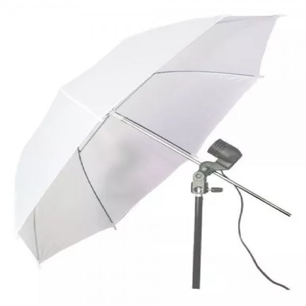 A Sombrinha difusora é feita em tecido de nylon branco e sua estrutura em aço cromado. Indicada para flash de estúdio e flash speedlight por suavizar a iluminação com uma melhor difusão da luz.