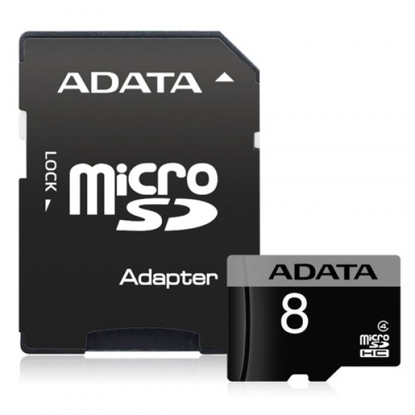 Cartão Memória Micro SD A-Data 8GB + 1 Adpt. Class 4 - PN # AUSDH8GCL4-RA1