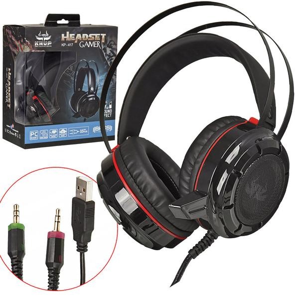 Headphone Gamer Com Microfone Sound Bass Vibration Vermelho Knup KP-417