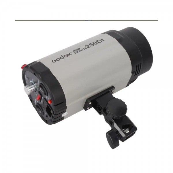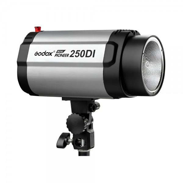 Flash de estúdio 250W DI 110V ideal para fotografia profissional e e-commerce. Controle de potência, fotocélula e alta qualidade de iluminação.