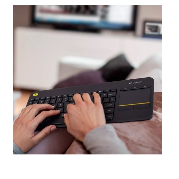 Controle sem fio do laptop. Este elegante teclado, com teclas de perfil baixo e confortáveis, oferece uma confiável conexão sem fio de longo alcance - perfeito para a sala de estar. Com um alcance sem fio de até dez metros, você pode aumentar o volume do vídeo favorito, navegar a Web, fazer blog, bater papo, e muito mais tudo do conforto do sofá. Não é necessário um mouse separado, graças ao touchpad de 3,5 polegadas.